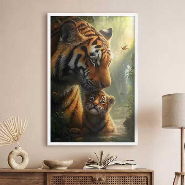Poster Tiger und Tigerjunge im Dschungel Nr f41760