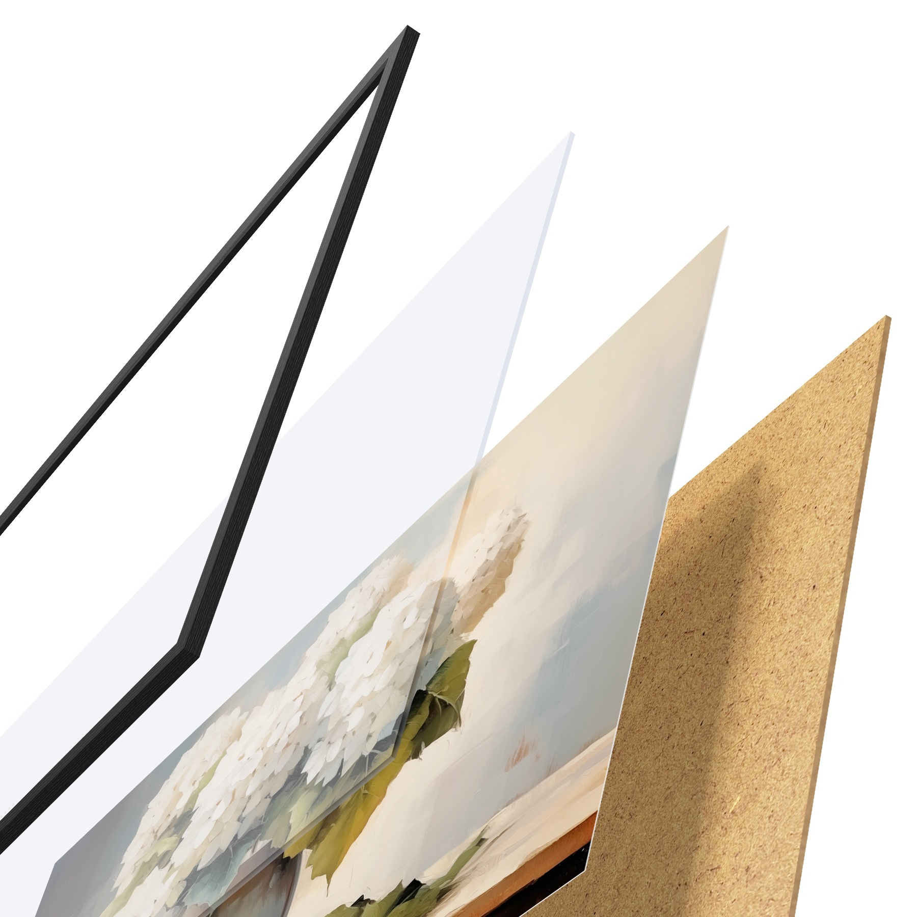 Das Poster besteht aus einem Rahmen, Plexiglas, einem gedruckten Bild und einer Rückwand aus Spanplatten. Dank der Halterungen auf der Rückseite kann das Poster sofort an die Wand gehängt werden.