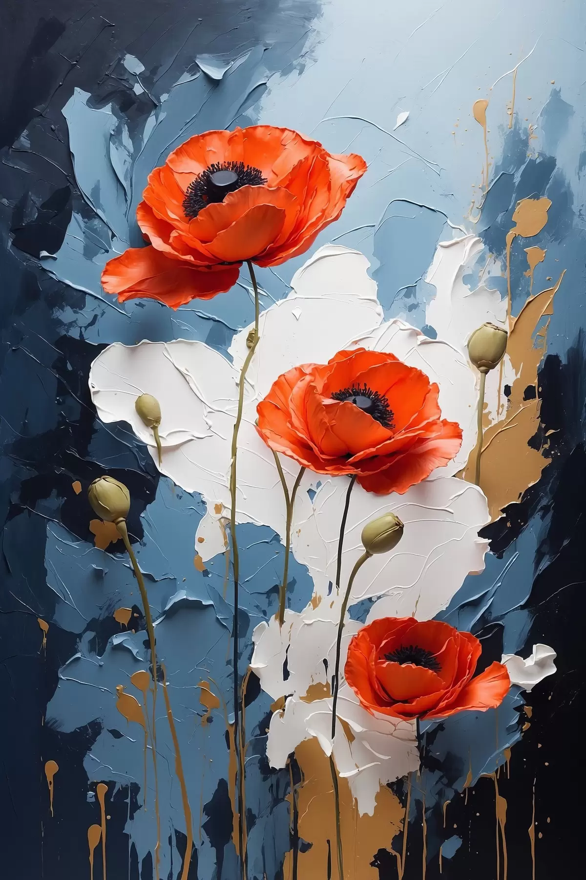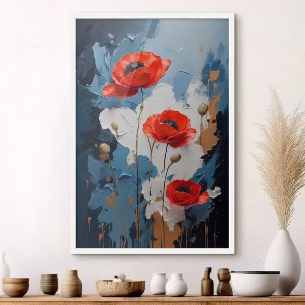 Poster Mohnblumen auf abstraktem mehrfarbigem Hintergrund im Stil der Ölmalerei f41765