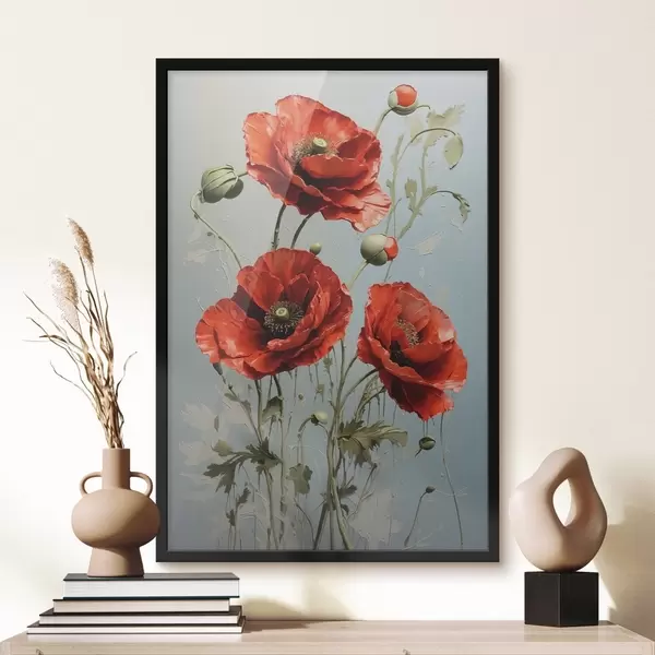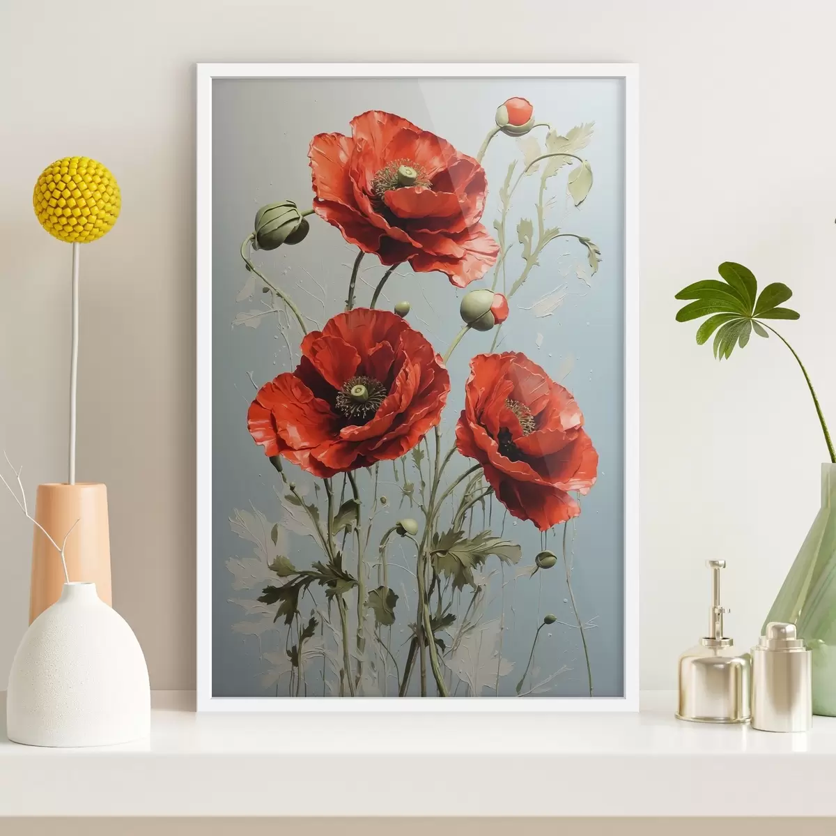 Poster Mohnblumen auf blauem Hintergrund Nr f41773