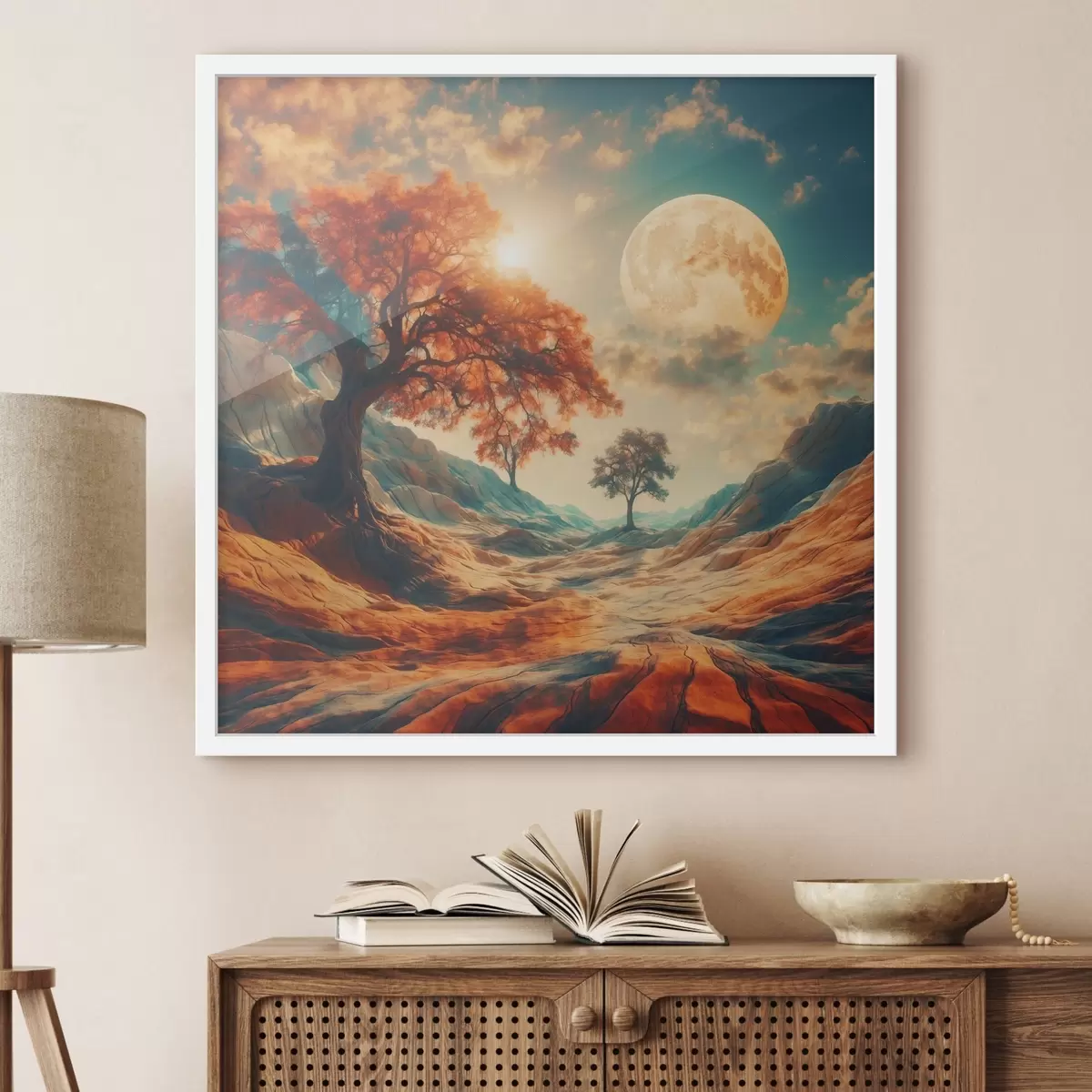 Poster Bäume und Berge auf riesigem Mondhintergrund Nr f41774