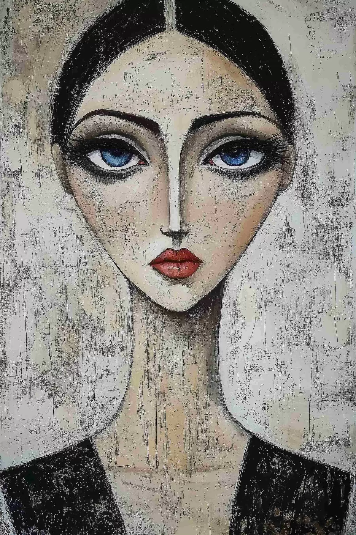 Poster Porträt einer Frau mit ausdrucksvollen Augen in einer stilisierten Technik Nr f41811