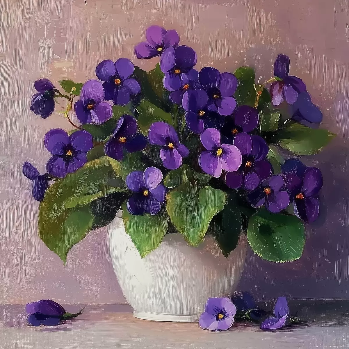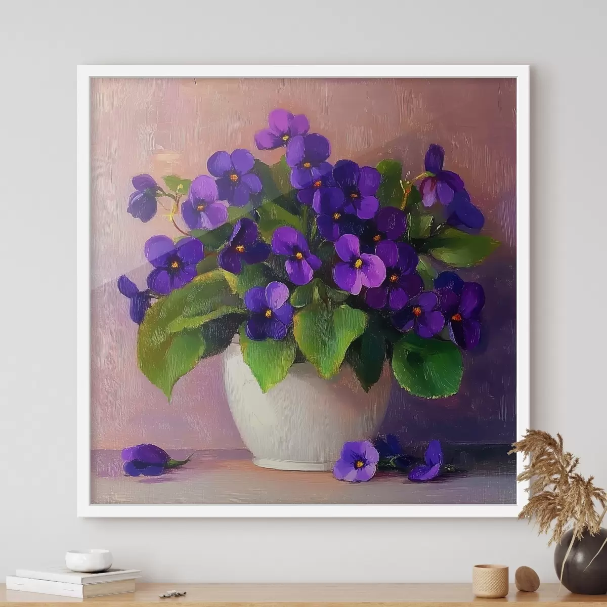 Poster Violette Veilchen in einem weißen Topf Nr f41823