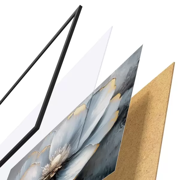 Das Poster besteht aus einem Rahmen, Plexiglas, einem gedruckten Bild und einer Rückwand aus Spanplatten. Dank der Halterungen auf der Rückseite kann das Poster sofort an die Wand gehängt werden.