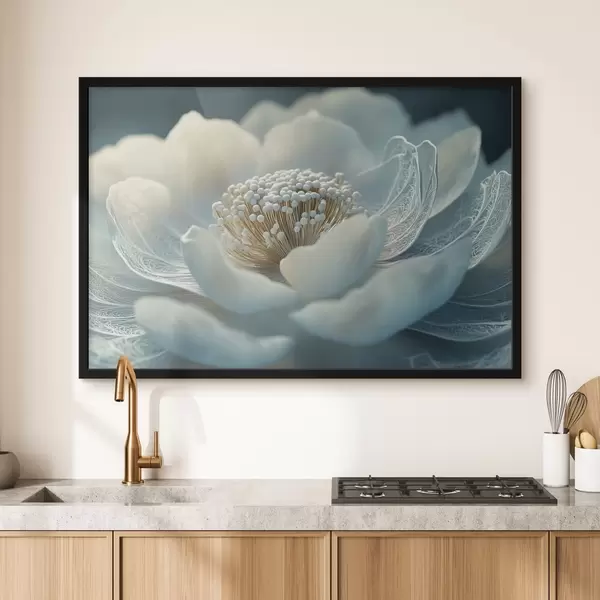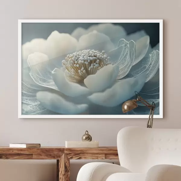 Poster Weiße luftige Blume mit Mustern auf den Blütenblättern Nr f41838