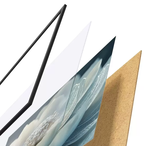 Das Poster besteht aus einem Rahmen, Plexiglas, einem gedruckten Bild und einer Rückwand aus Spanplatten. Dank der Halterungen auf der Rückseite kann das Poster sofort an die Wand gehängt werden.
