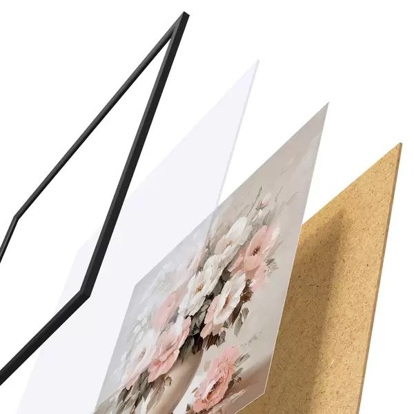 Das Poster besteht aus einem Rahmen, Plexiglas, einem gedruckten Bild und einer Rückwand aus Spanplatten. Dank der Halterungen auf der Rückseite kann das Poster sofort an die Wand gehängt werden.
