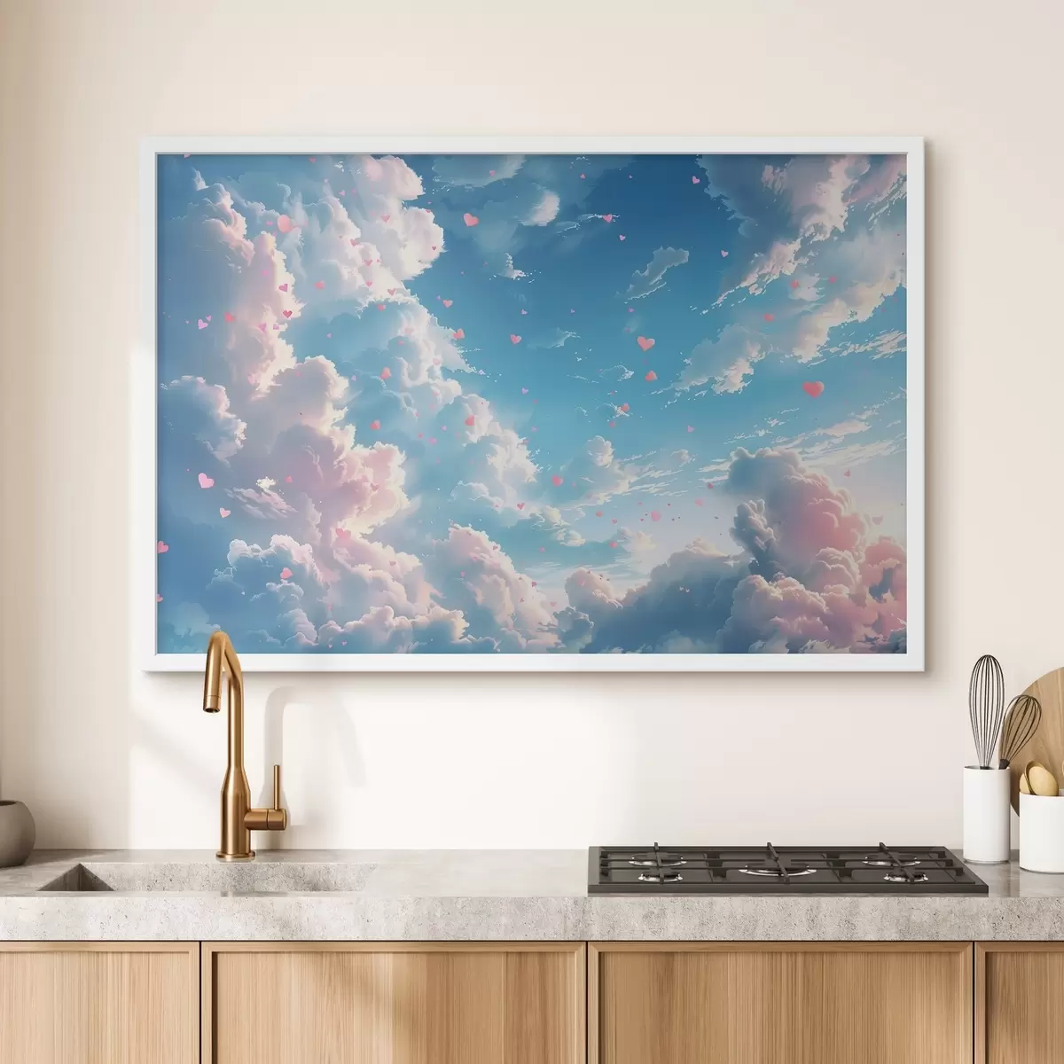 Poster Blauer Himmel mit Herzen im Anime-Stil f41864