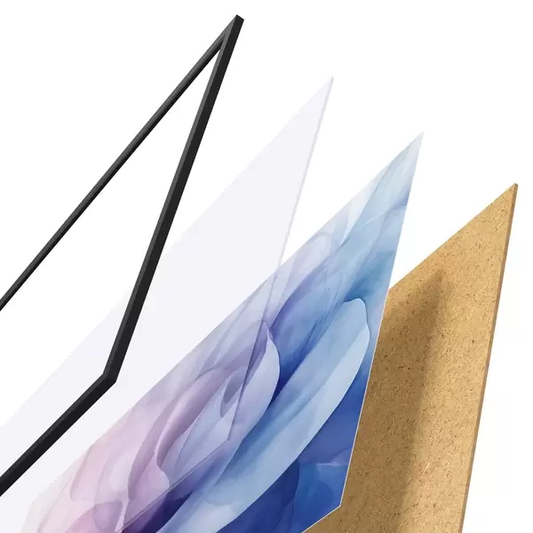 Das Poster besteht aus einem Rahmen, Plexiglas, einem gedruckten Bild und einer Rückwand aus Spanplatten. Dank der Halterungen auf der Rückseite kann das Poster sofort an die Wand gehängt werden.