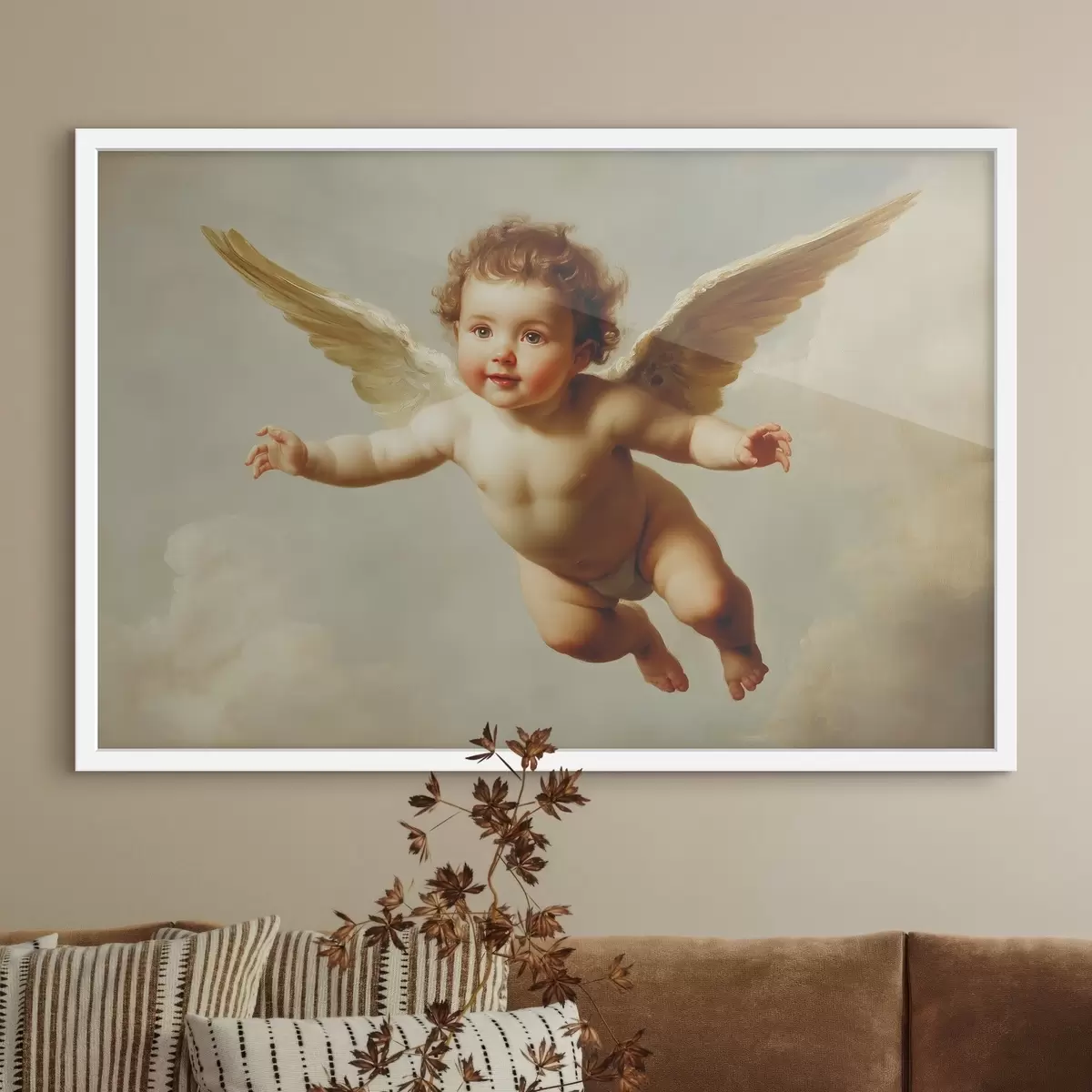 Poster Angelic Baby fliegen in der Luft in der Art der Malerei f41876