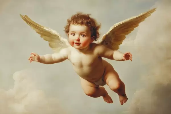 Poster Angelic Baby fliegen in der Luft in der Art der Malerei f41876