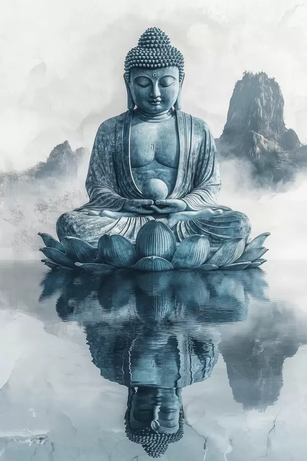 Poster Buddha-Statue, orientalischer Stil, Buddhismus, Berge, See, Meditation, spirituell Nr f41890