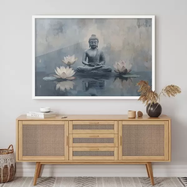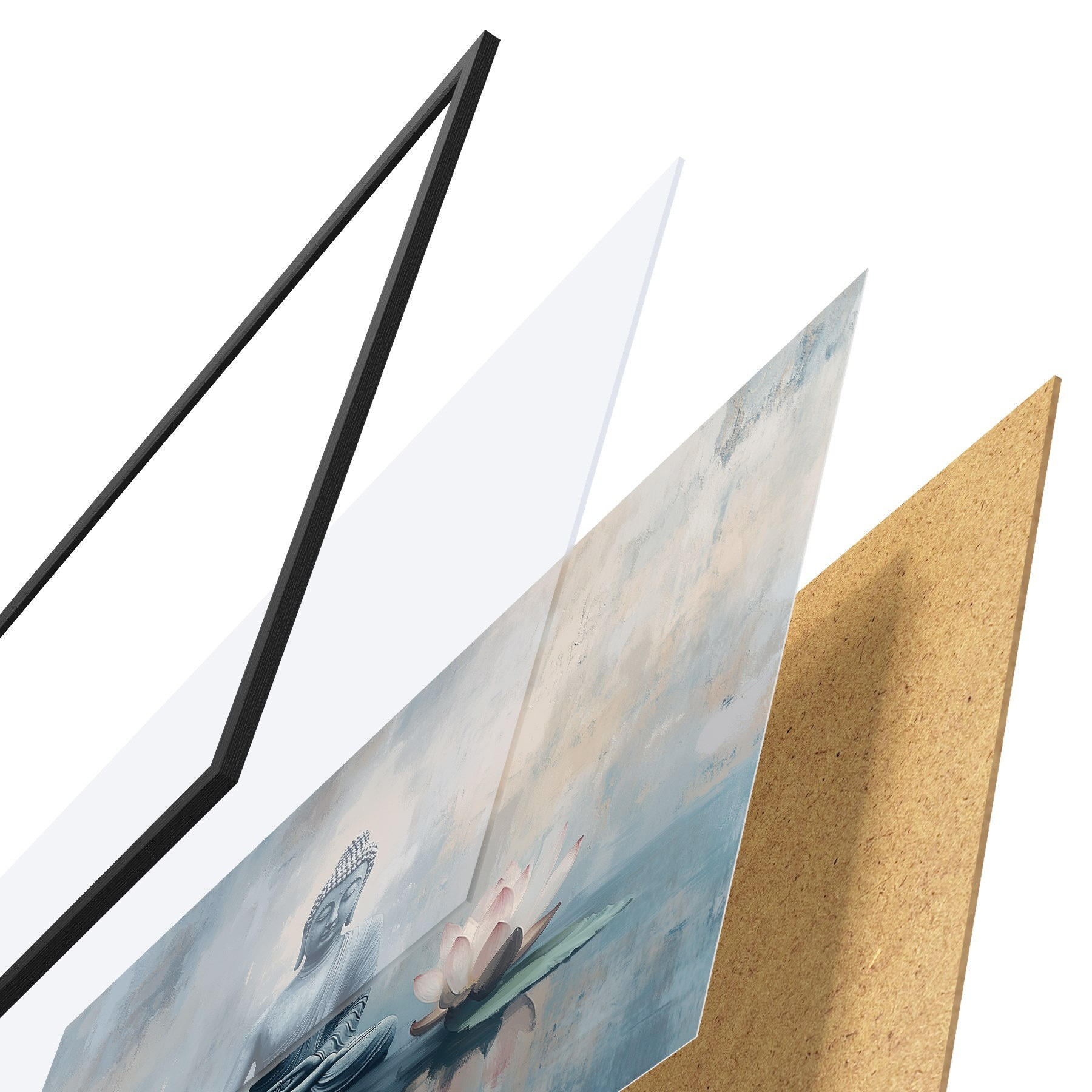 Poster Meditierender Buddha im See mit Lotusblumen, orientalisch, Acryl-Stil Nr f41891