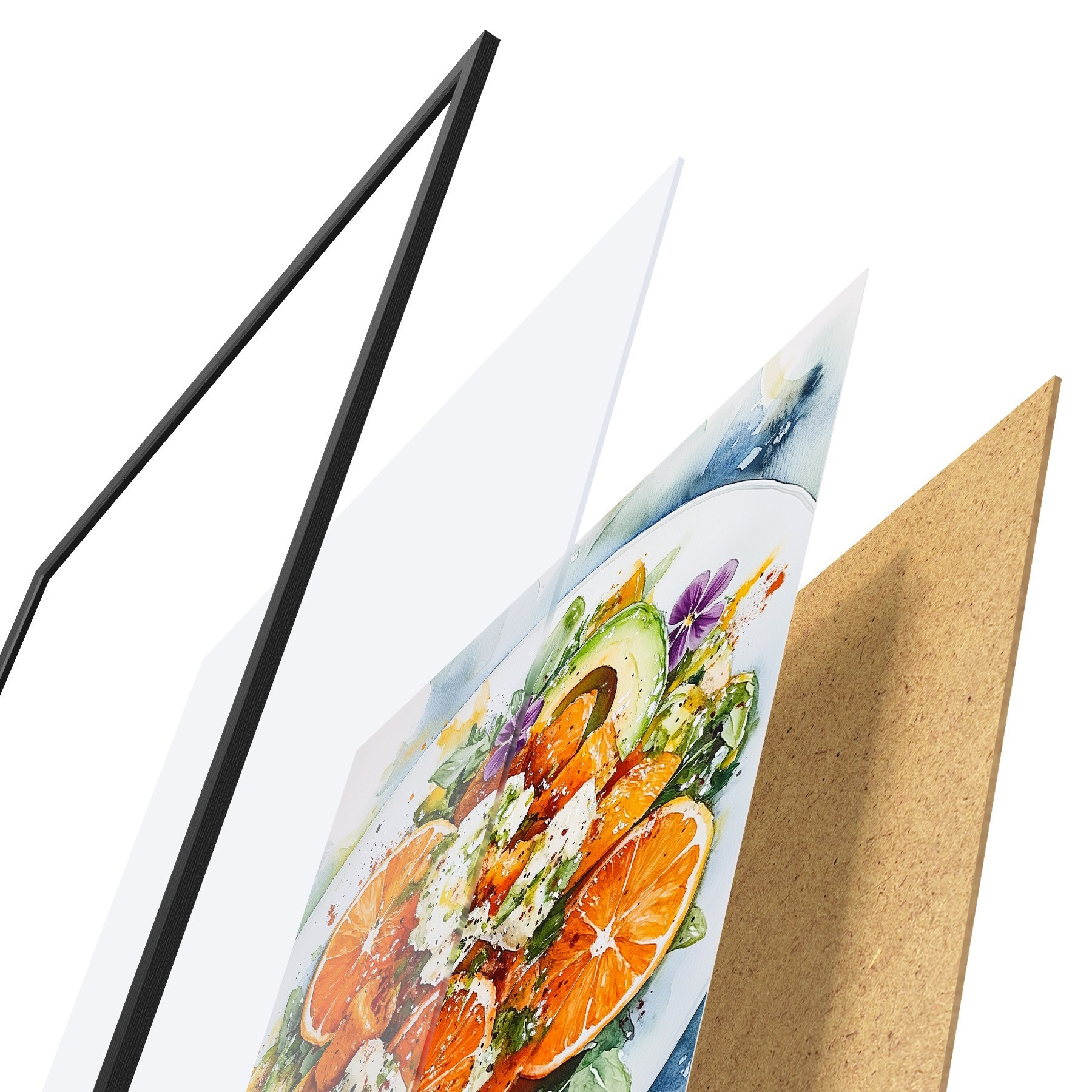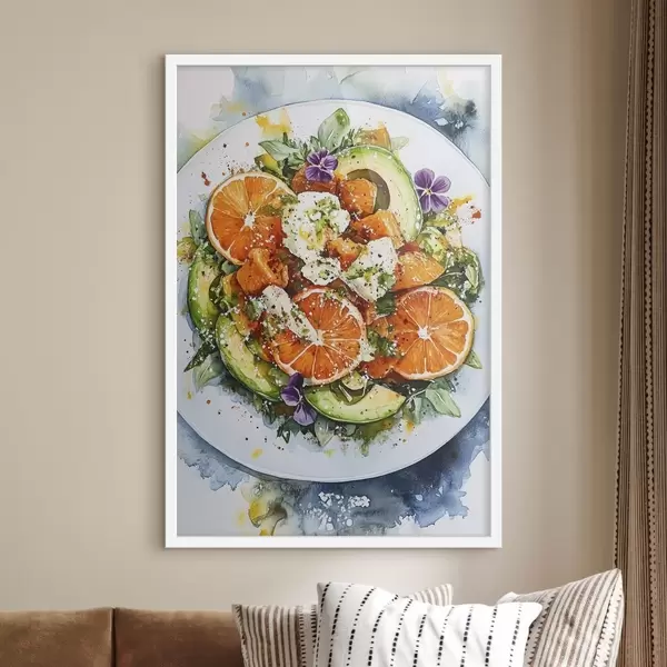 Poster Leckerer Salat mit Orangen, Feta-Käse, Kürbissen und Avocado, Aquarell-Lebensmittel f41959