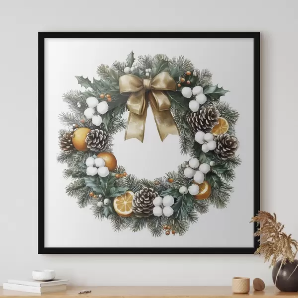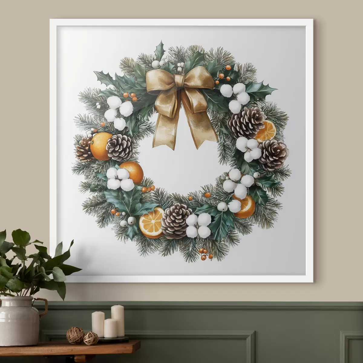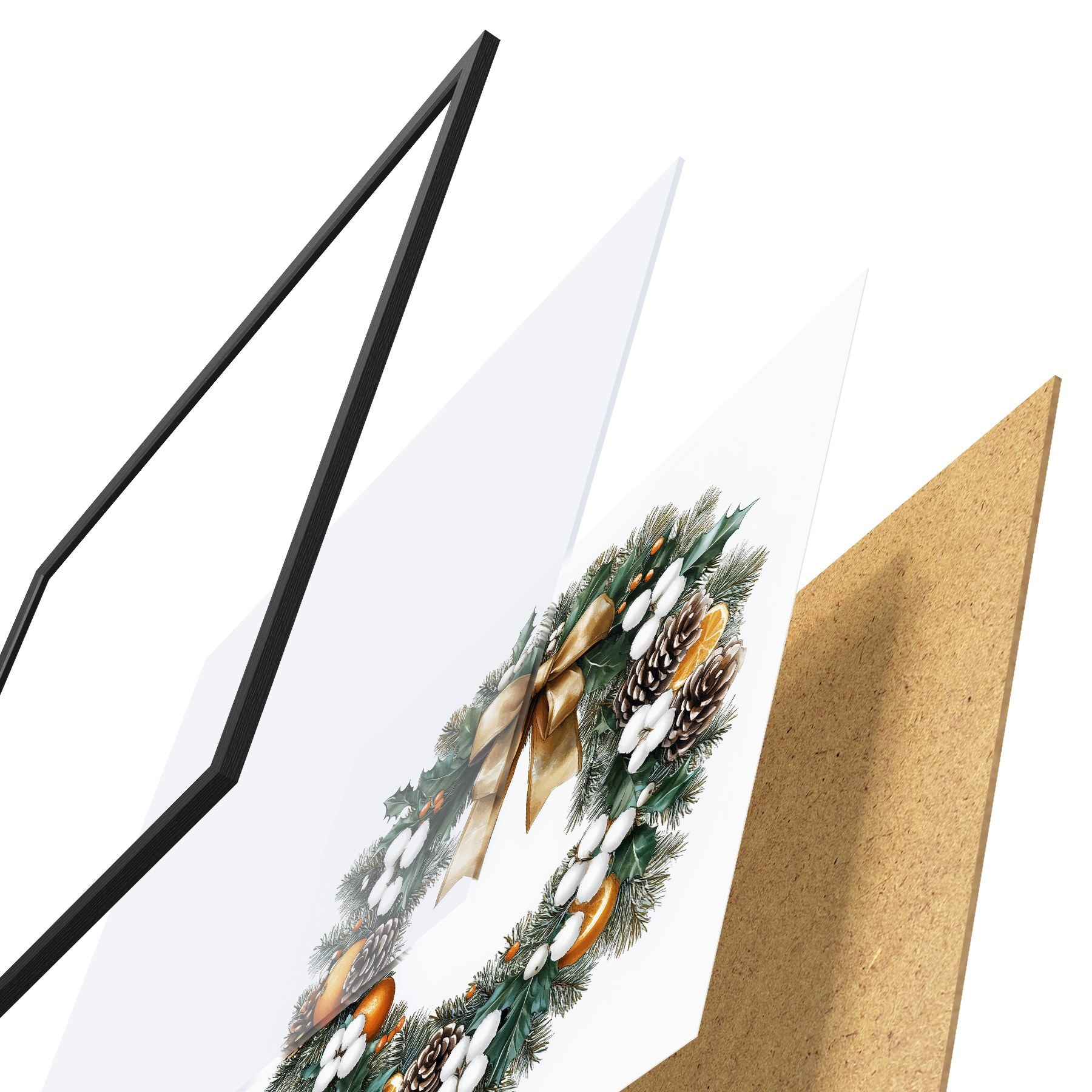 Poster Weihnachtskranz mit Schleife, Baumwolle, Orangen, Beeren und Zapfen f41962