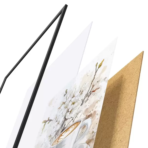 Das Poster besteht aus einem Rahmen, Plexiglas, einem gedruckten Bild und einer Rückwand aus Spanplatten. Dank der Halterungen auf der Rückseite kann das Poster sofort an die Wand gehängt werden.