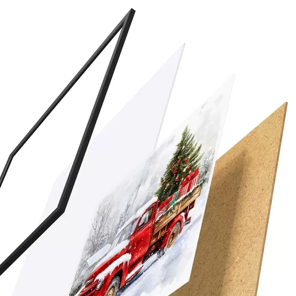 Das Poster besteht aus einem Rahmen, Plexiglas, einem gedruckten Bild und einer Rückwand aus Spanplatten. Dank der Halterungen auf der Rückseite kann das Poster sofort an die Wand gehängt werden.
