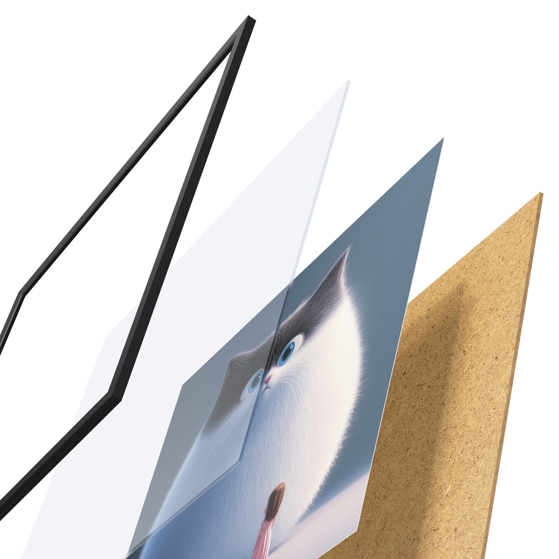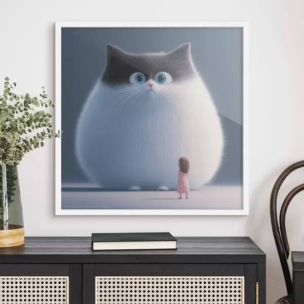 Poster Eine überraschte flauschige Katze mit einem Mädchen im Illustrationsstil Nr f41974