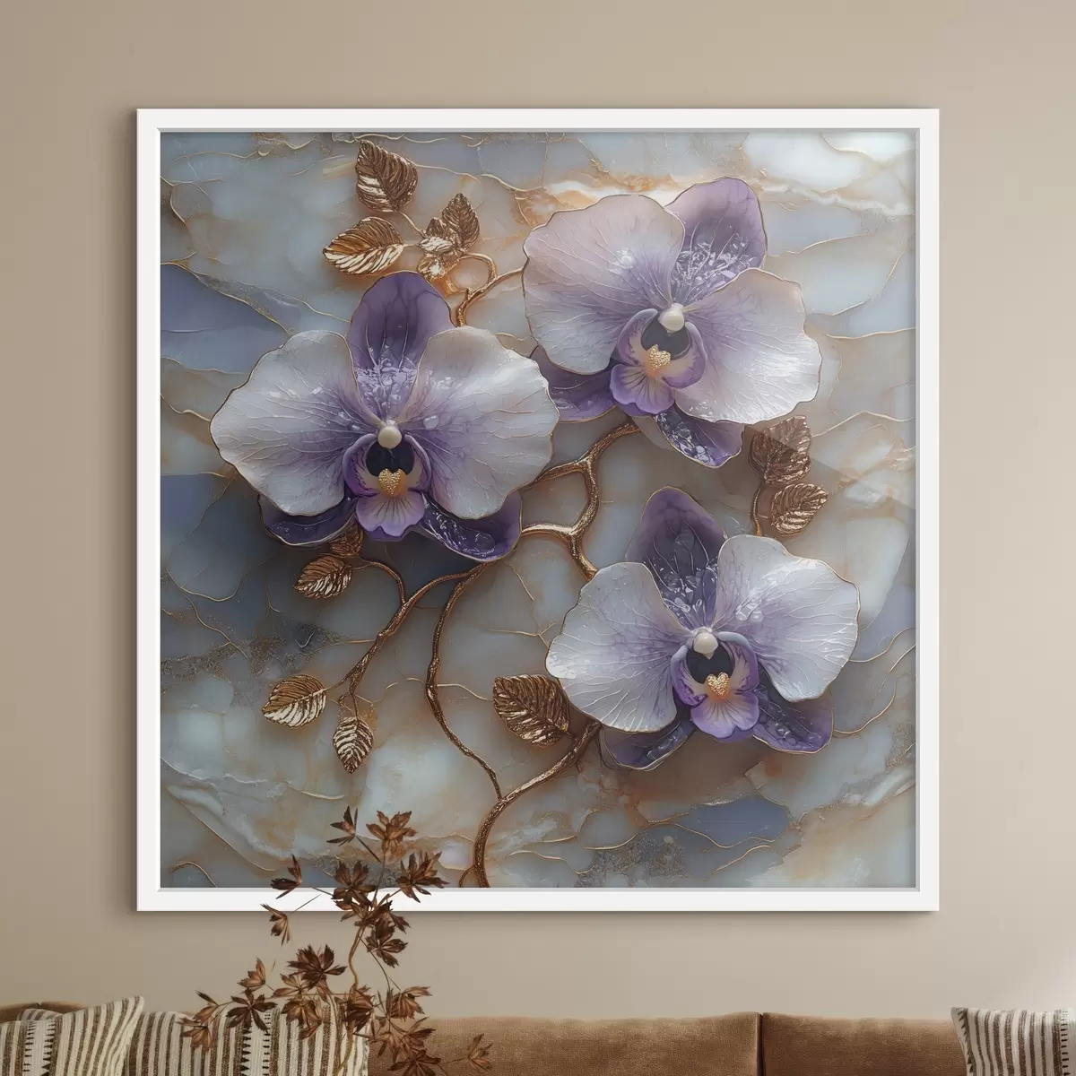 Poster Üppige Orchideen auf einem strukturierten Marmorhintergrund f41984