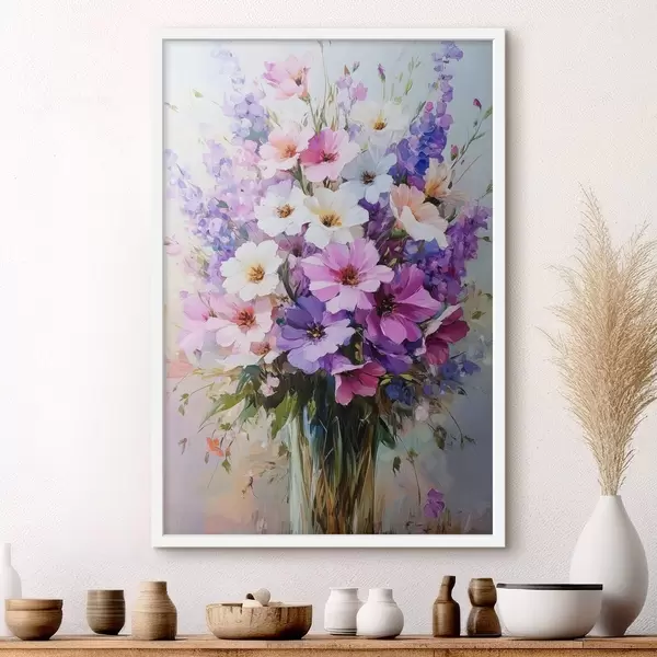 Poster lila und weiße Blumen in einer Vase Nr f41999