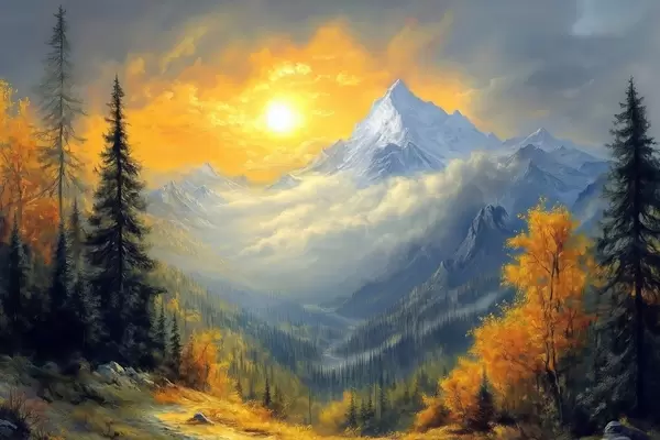 Poster die Sonne über den Bergen im Herbst Nr f42006