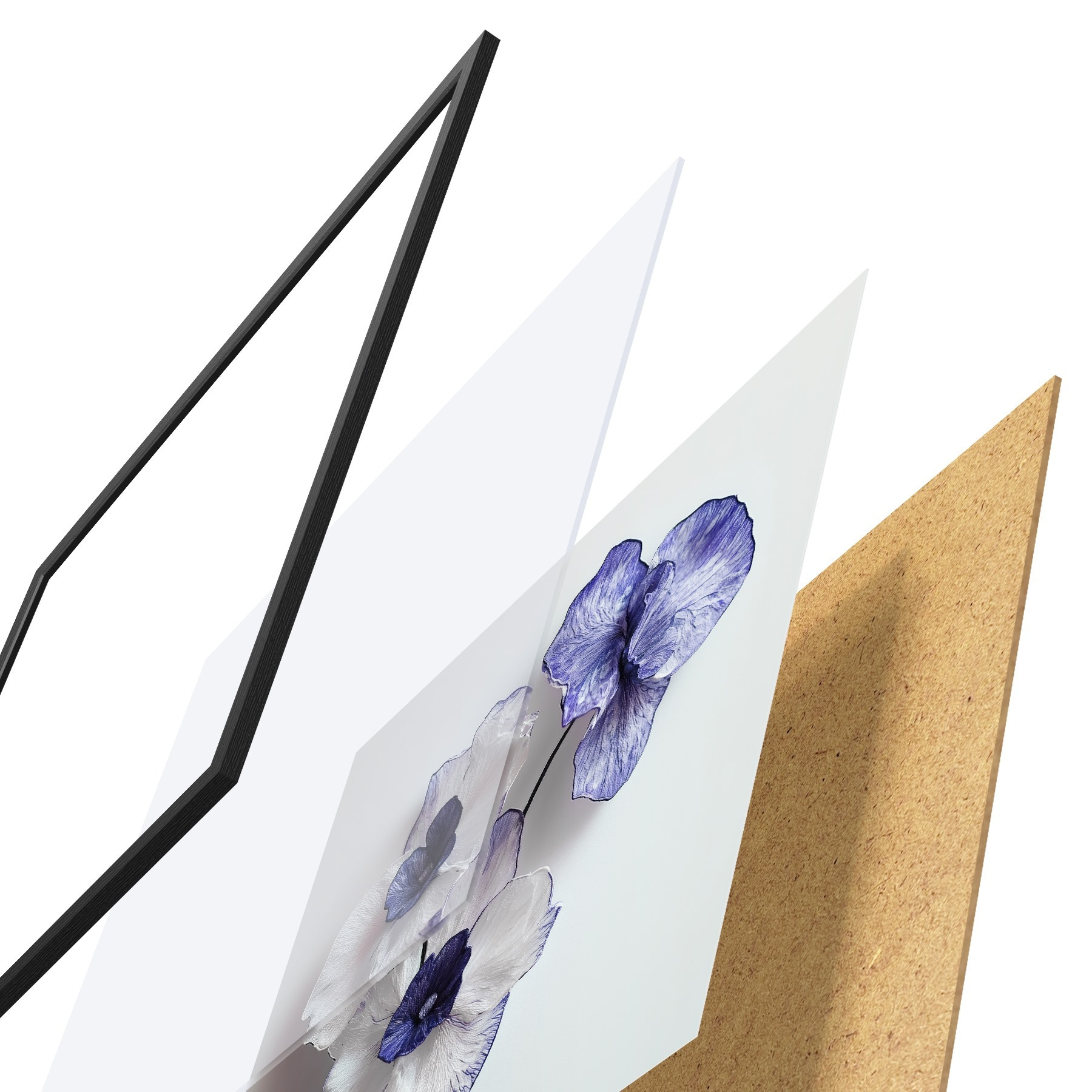 Das Poster besteht aus einem Rahmen, Plexiglas, einem gedruckten Bild und einer Rückwand aus Spanplatten. Dank der Halterungen auf der Rückseite kann das Poster sofort an die Wand gehängt werden.