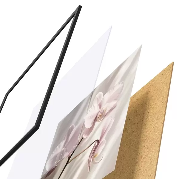Das Poster besteht aus einem Rahmen, Plexiglas, einem gedruckten Bild und einer Rückwand aus Spanplatten. Dank der Halterungen auf der Rückseite kann das Poster sofort an die Wand gehängt werden.