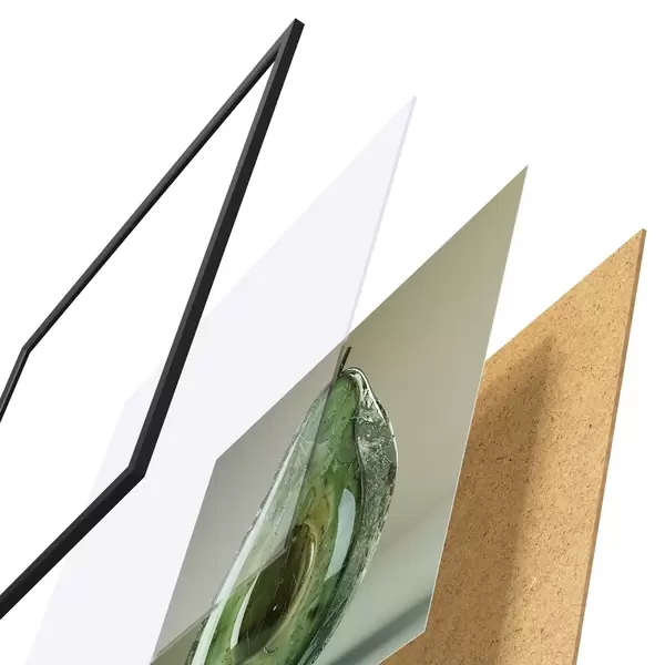 Das Poster besteht aus einem Rahmen, Plexiglas, einem gedruckten Bild und einer Rückwand aus Spanplatten. Dank der Halterungen auf der Rückseite kann das Poster sofort an die Wand gehängt werden.