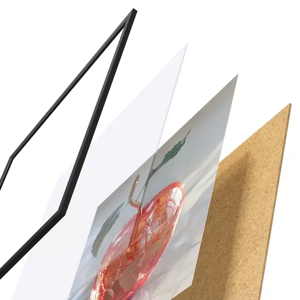 Das Poster besteht aus einem Rahmen, Plexiglas, einem gedruckten Bild und einer Rückwand aus Spanplatten. Dank der Halterungen auf der Rückseite kann das Poster sofort an die Wand gehängt werden.