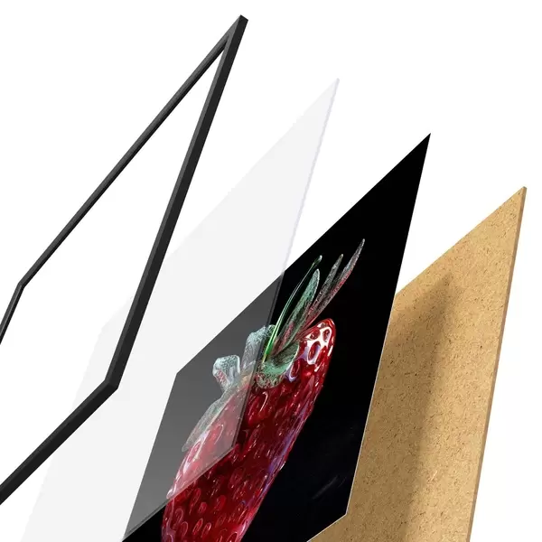 Das Poster besteht aus einem Rahmen, Plexiglas, einem gedruckten Bild und einer Rückwand aus Spanplatten. Dank der Halterungen auf der Rückseite kann das Poster sofort an die Wand gehängt werden.