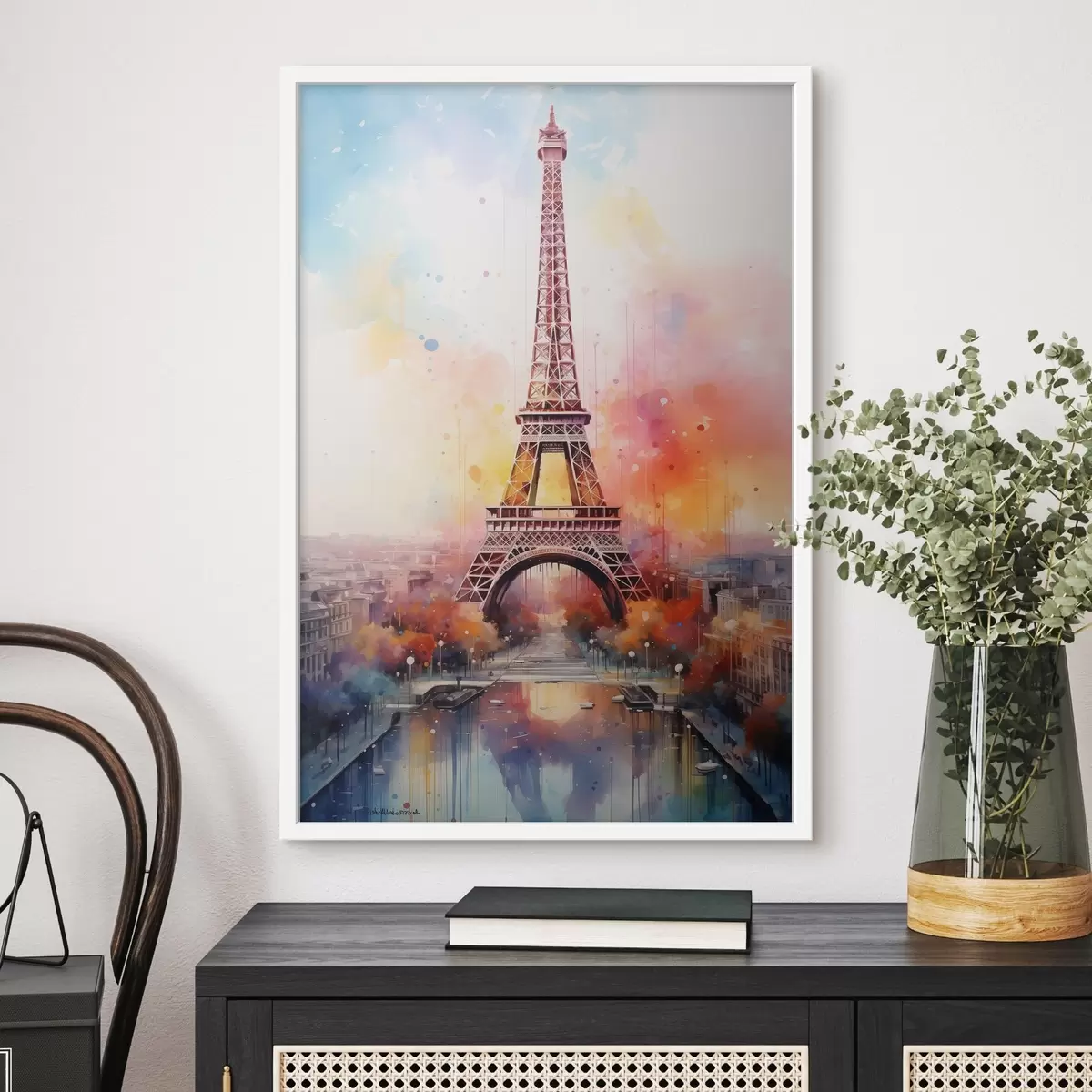 Poster Paris auf einem Hintergrund aus Aquarellspritzern f42081