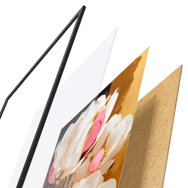 Das Poster besteht aus einem Rahmen, Plexiglas, einem gedruckten Bild und einer Rückwand aus Spanplatten. Dank der Halterungen auf der Rückseite kann das Poster sofort an die Wand gehängt werden.