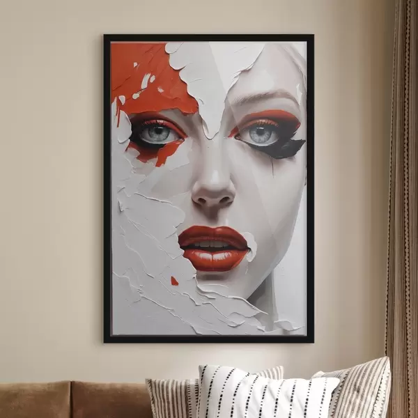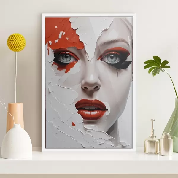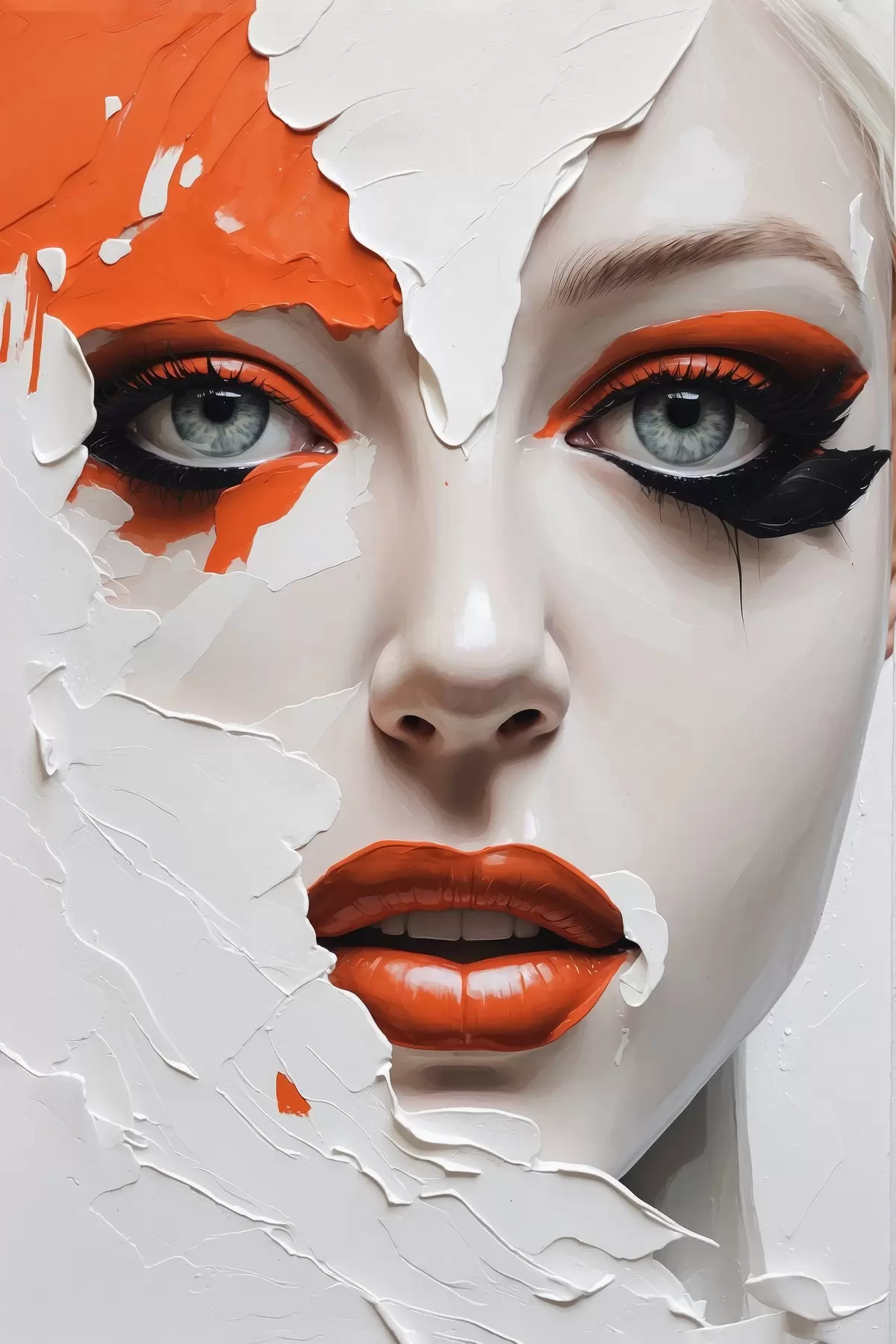 Poster Gesicht eines Mädchens in weißer und oranger Farbe Nr f42092