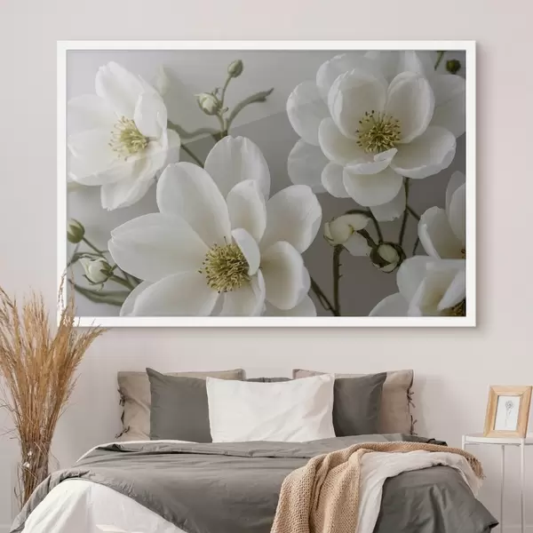 Poster Weiße Blumen und Stängel auf hellem Hintergrund f42097