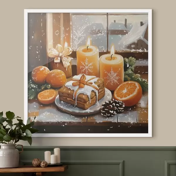 Poster Weihnachtskuchen, Mandarinen, Kerzen f42101