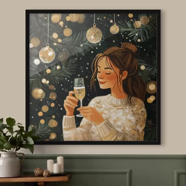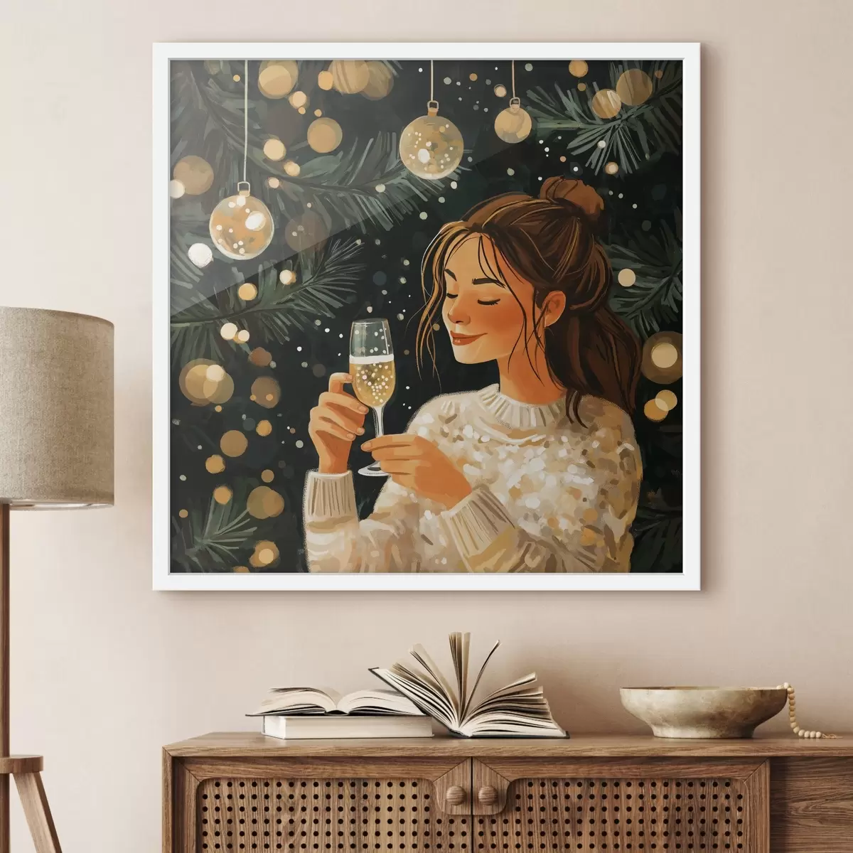 Poster Ein Mädchen mit einem Glas Sekt zu Silvester Nr f42102