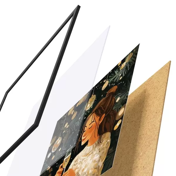 Das Poster besteht aus einem Rahmen, Plexiglas, einem gedruckten Bild und einer Rückwand aus Spanplatten. Dank der Halterungen auf der Rückseite kann das Poster sofort an die Wand gehängt werden.