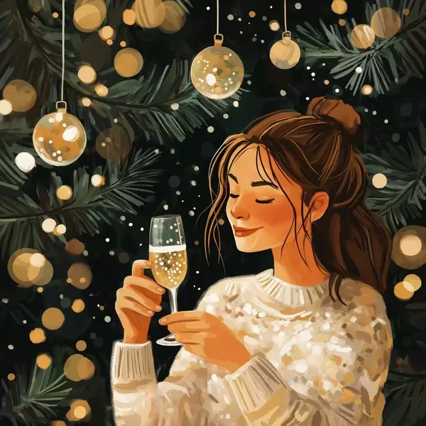 Poster Ein Mädchen mit einem Glas Sekt zu Silvester f42102
