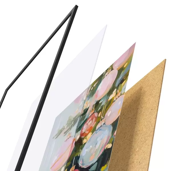 Das Poster besteht aus einem Rahmen, Plexiglas, einem gedruckten Bild und einer Rückwand aus Spanplatten. Dank der Halterungen auf der Rückseite kann das Poster sofort an die Wand gehängt werden.
