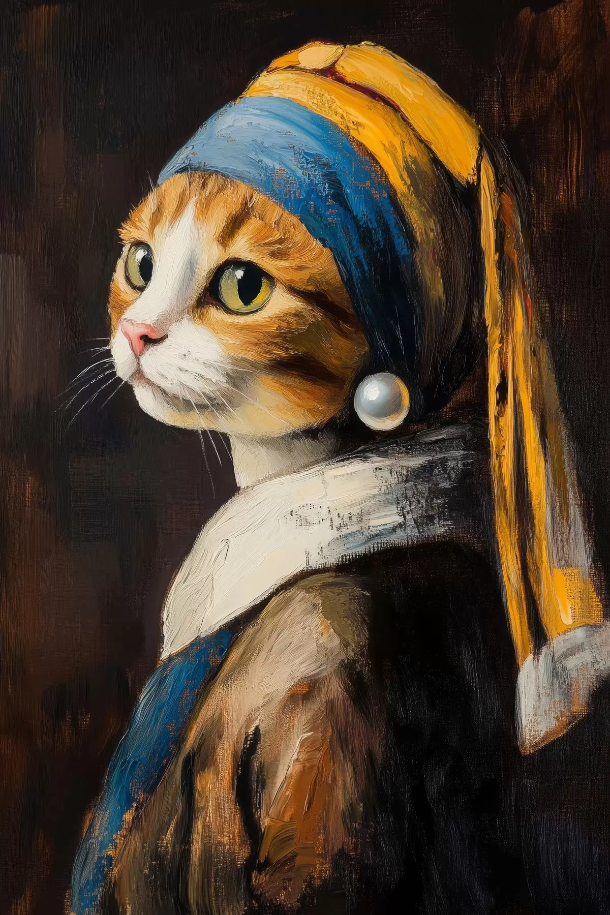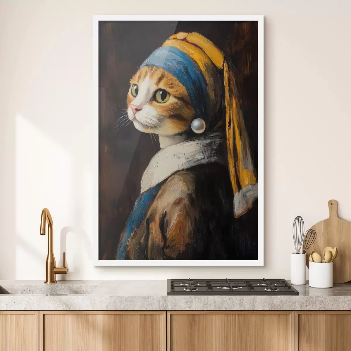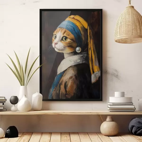 Poster Eine Katze mit einem Perlenohrring Nr f42107