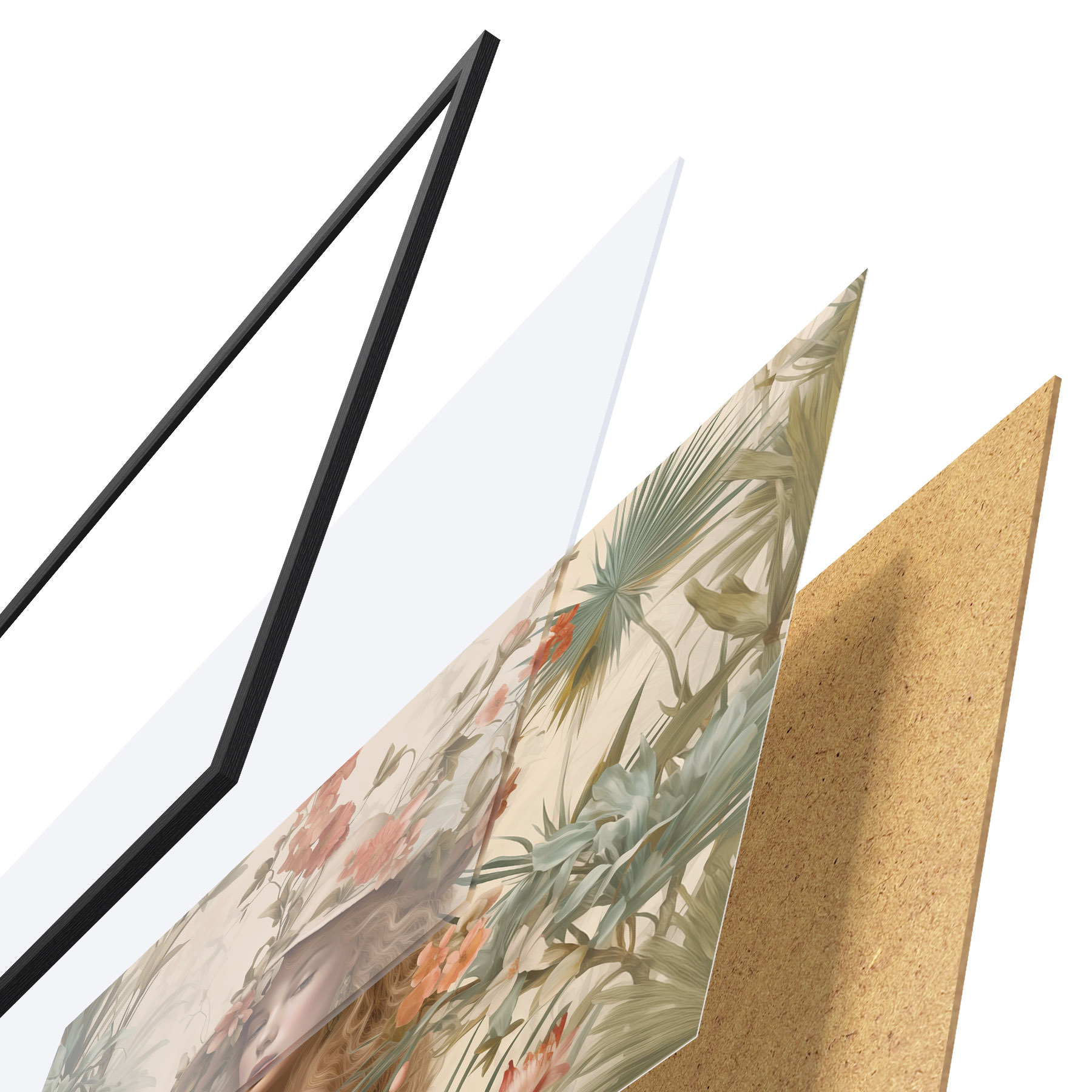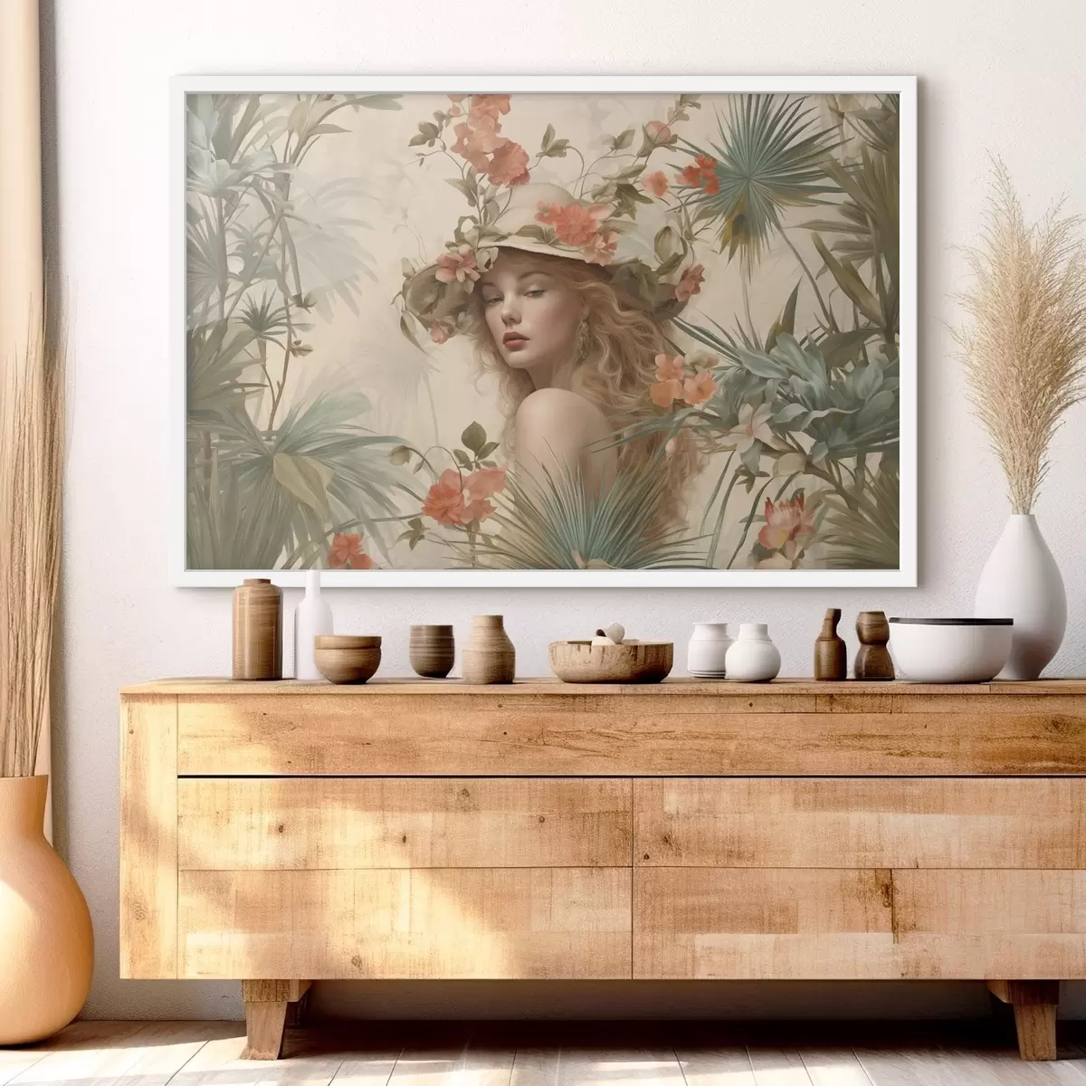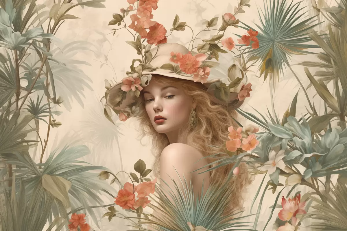 Poster Mädchen mit Hut in den Tropen im Vintage-Stil Nr f42115