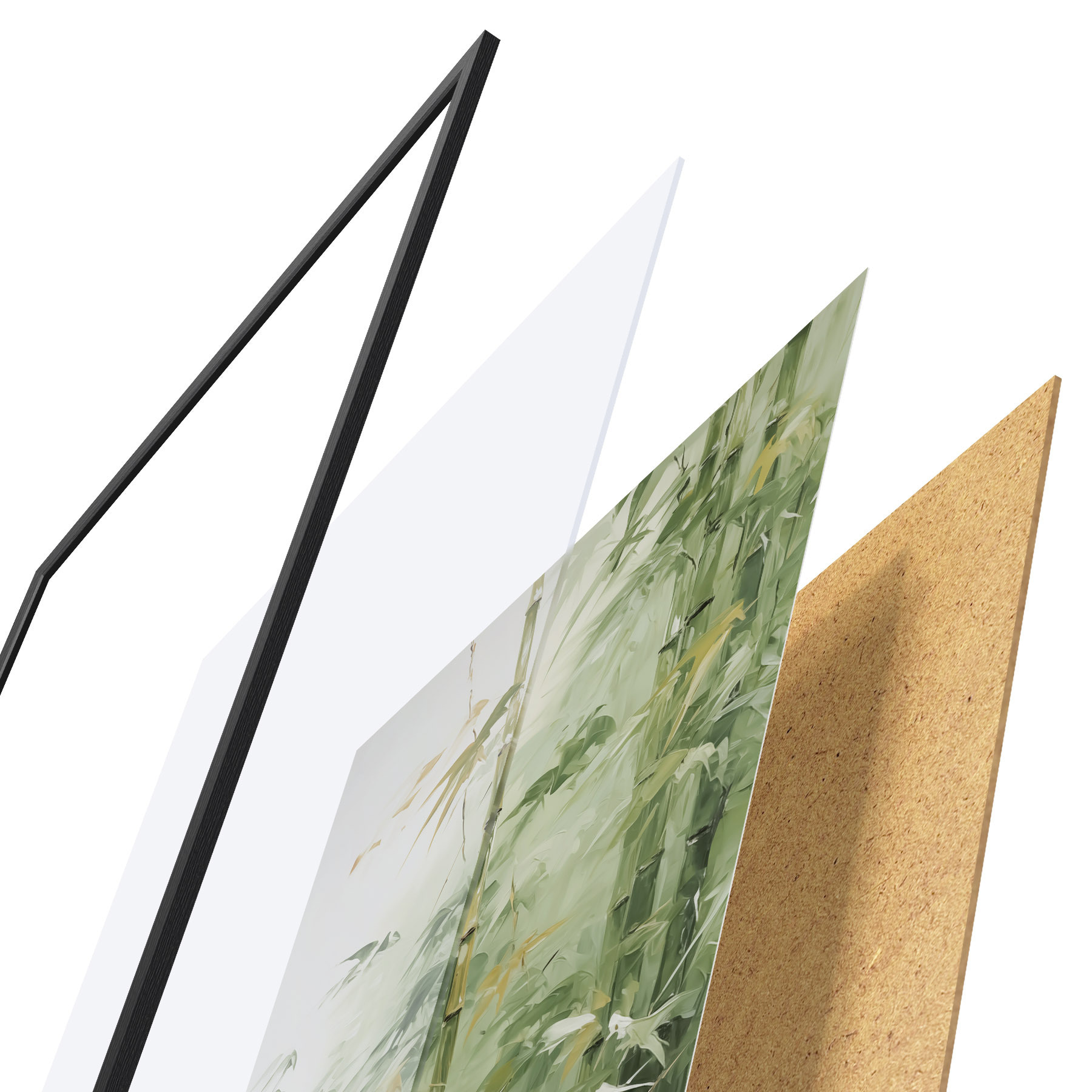 Das Poster besteht aus einem Rahmen, Plexiglas, einem gedruckten Bild und einer Rückwand aus Spanplatten. Dank der Halterungen auf der Rückseite kann das Poster sofort an die Wand gehängt werden.