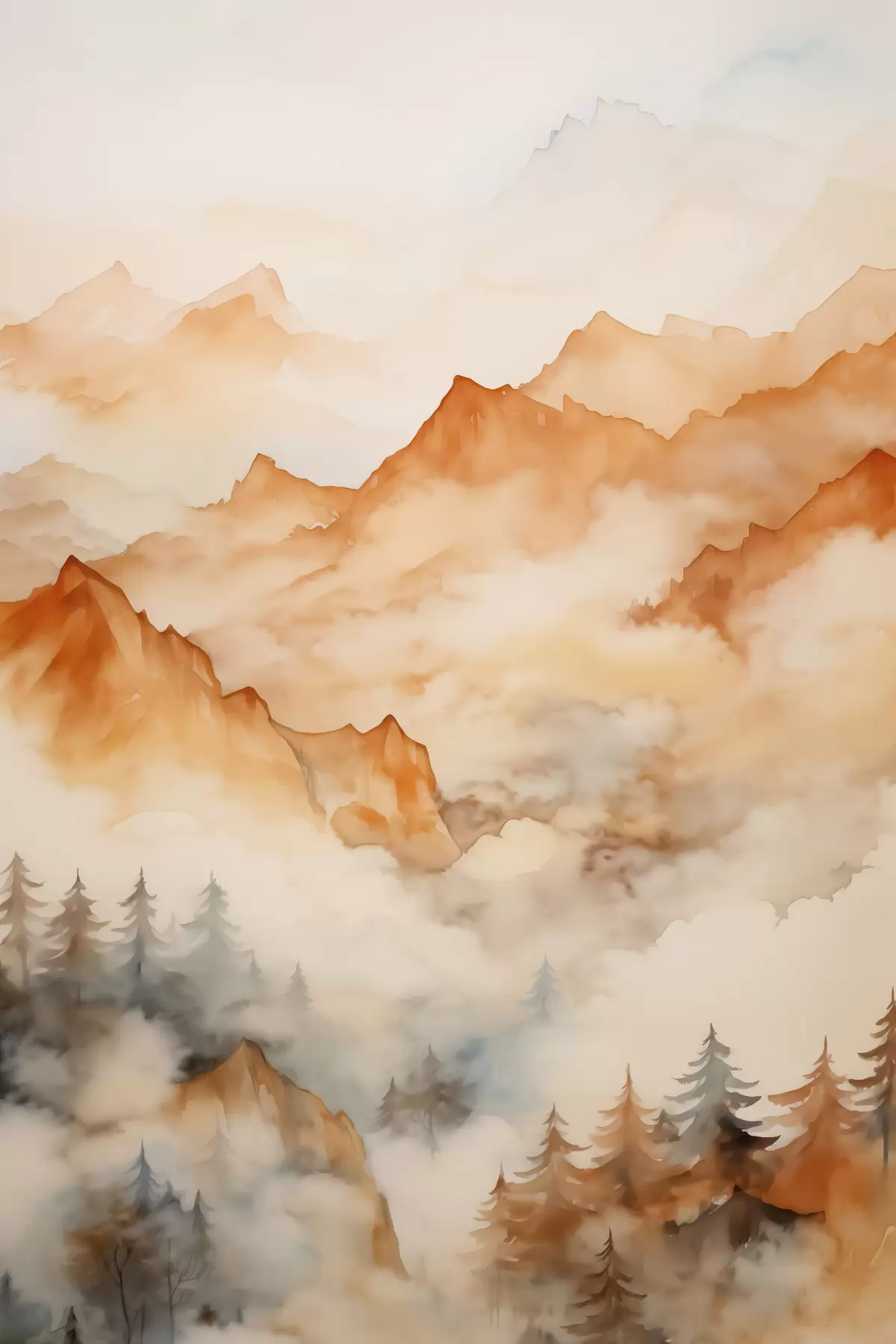 Poster Wald und Berge Nachahmung von Aquarell, orange Farbtöne Nr f42119