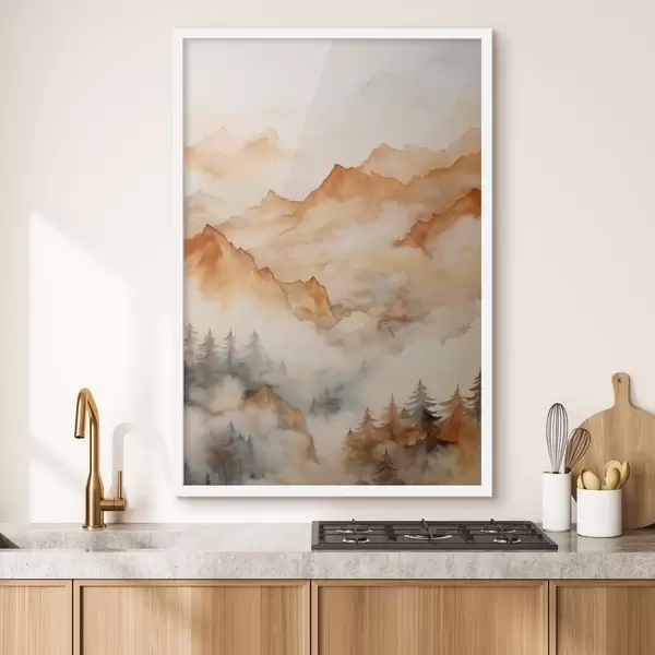 Poster Wald und Berge Nachahmung von Aquarell, orange Farbtöne f42119
