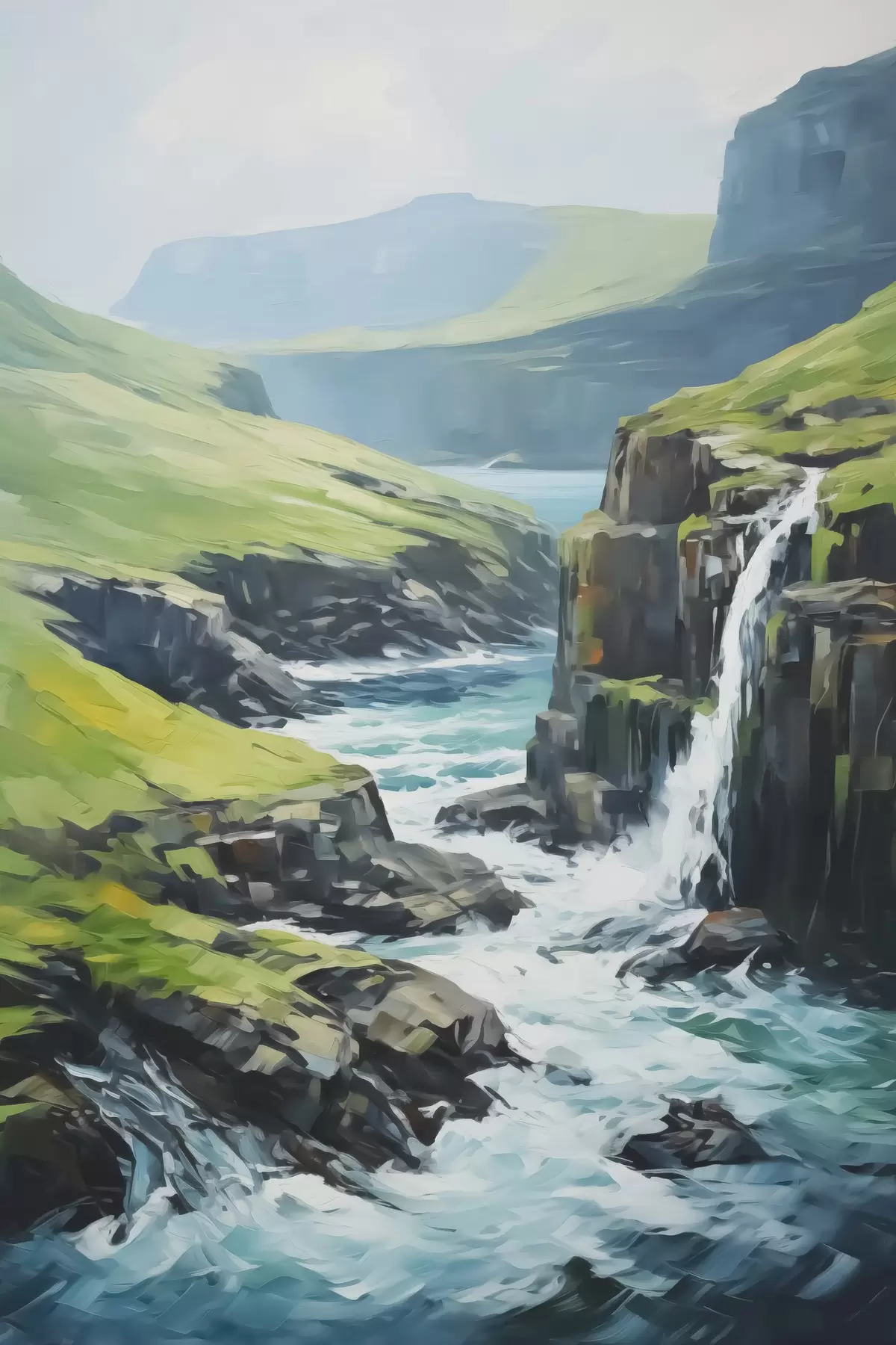 Poster Fluss zwischen Fjorden Nachahmung der Malerei f42125