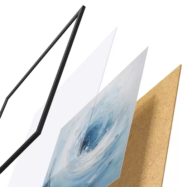 Das Poster besteht aus einem Rahmen, Plexiglas, einem gedruckten Bild und einer Rückwand aus Spanplatten. Dank der Halterungen auf der Rückseite kann das Poster sofort an die Wand gehängt werden.