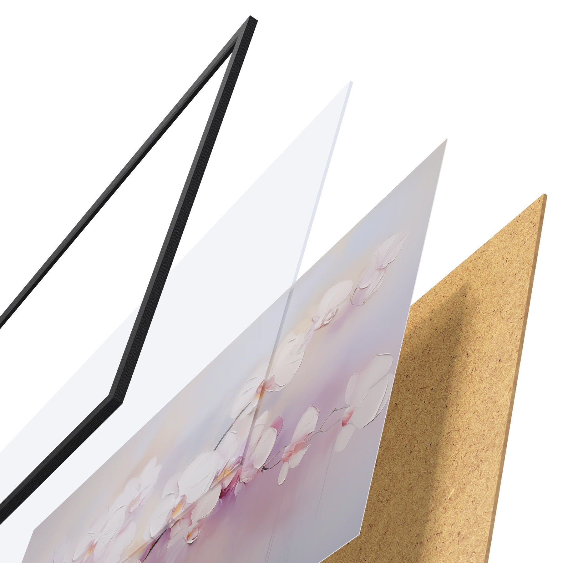 Das Poster besteht aus einem Rahmen, Plexiglas, einem gedruckten Bild und einer Rückwand aus Spanplatten. Dank der Halterungen auf der Rückseite kann das Poster sofort an die Wand gehängt werden.