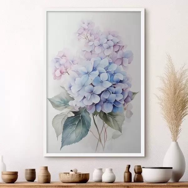 Poster Zweig mit Hortensienblüten Nachahmung Aquarell f42143