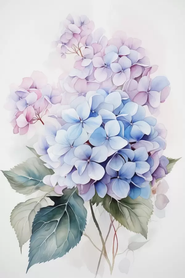 Poster Zweig mit Hortensienblüten Nachahmung Aquarell Nr f42143
