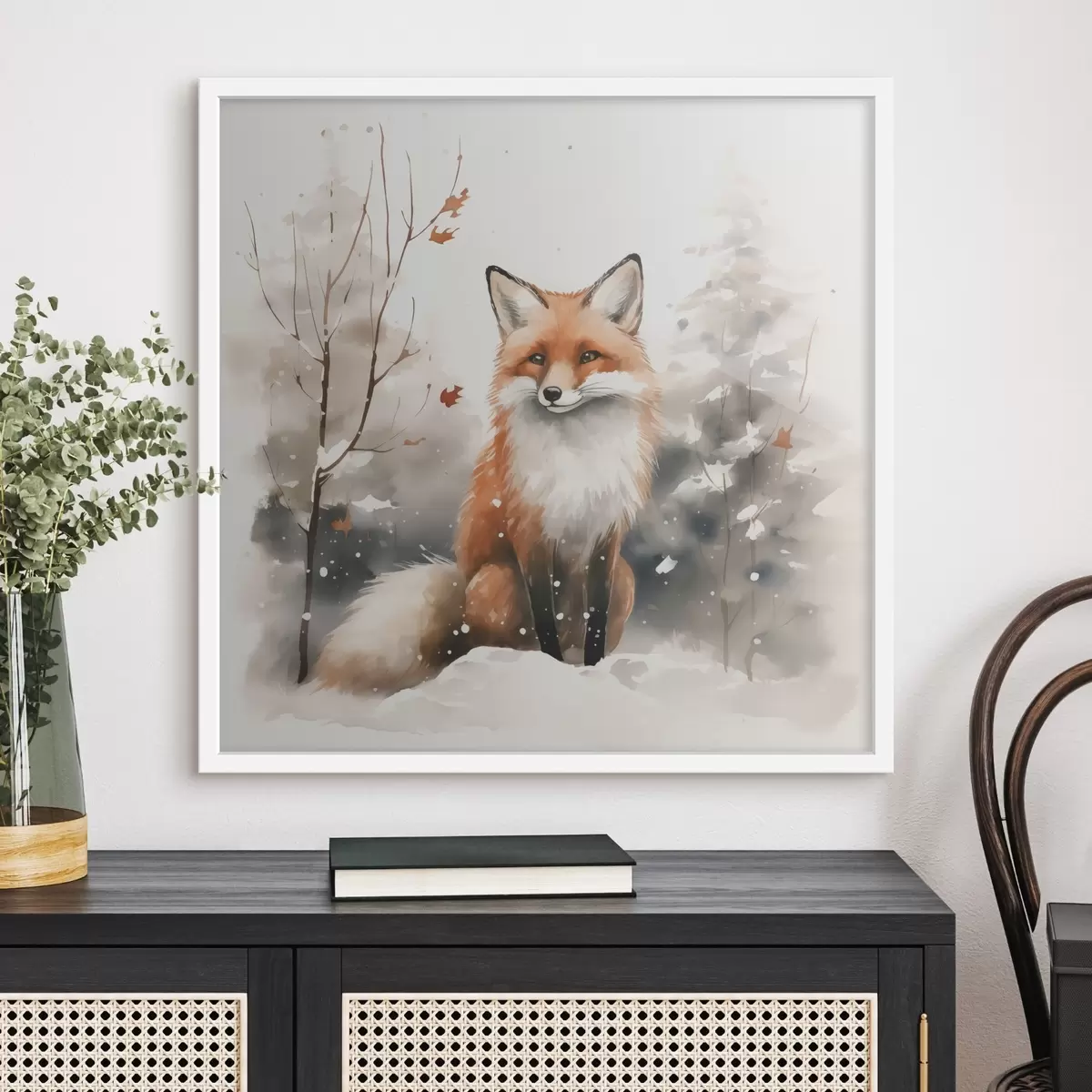 Poster Fuchsjunges in einem verschneiten Wald Nachahmung von Aquarell f42146